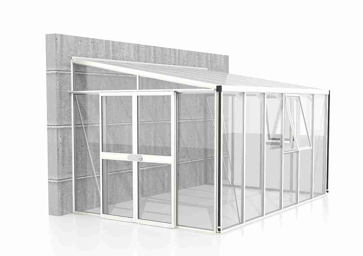 Szklarnie do ściany z serii ATHENA są zaliczane do kategorii PREMIUM - szklarnia jest produkowana przez renomowanego producenta z Wielkiej Brytanii. Szklarnia wykonana jest z anodowanych profili aluminiowych, a przeszklenie wykonane jest ze szkła hartowanego o grubości 3 mm. Szkło znacznie zmniejsza nagrzewanie się wnętrza w okresie letnim, jednocześnie zapewniając wystarczającą przepuszczalność światła. Przeszklenie dachu wykonane jest z termoizolacyjnych płyt komorowych z poliwęglanu o grubości 10 mm. Przeszklenie jest wsunięte w aluminiowe profile H.