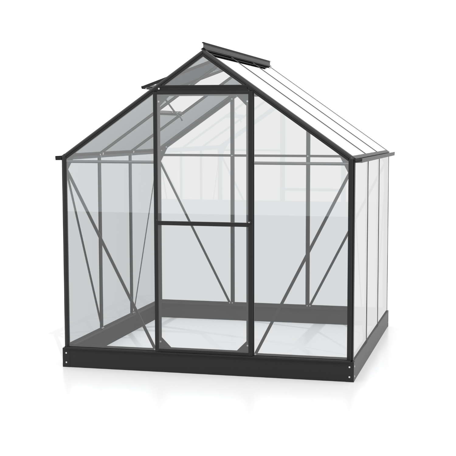 Szklarnia aluminiowa, sz 1,98 x gł 1,93 m, kolor czarny, 1x okno dachowe, szkło hartowane przezroczyste 3 mm, drzwi uchylne, pow 3,82 m2 sup>.