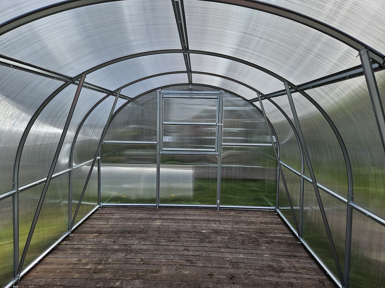 | szklarnia łukowa LANITPLAST TIBERUS | profil ze stali ocynkowanej o grubości 1 mm, rozstaw łuków 100 cm, podwójne drzwi z przodu, okno wentylacyjne z tyłu, przeszklenie do wycięcia z dostarczonych płyt poliwęglanowych, możliwość montażu okna dachowego – tak |