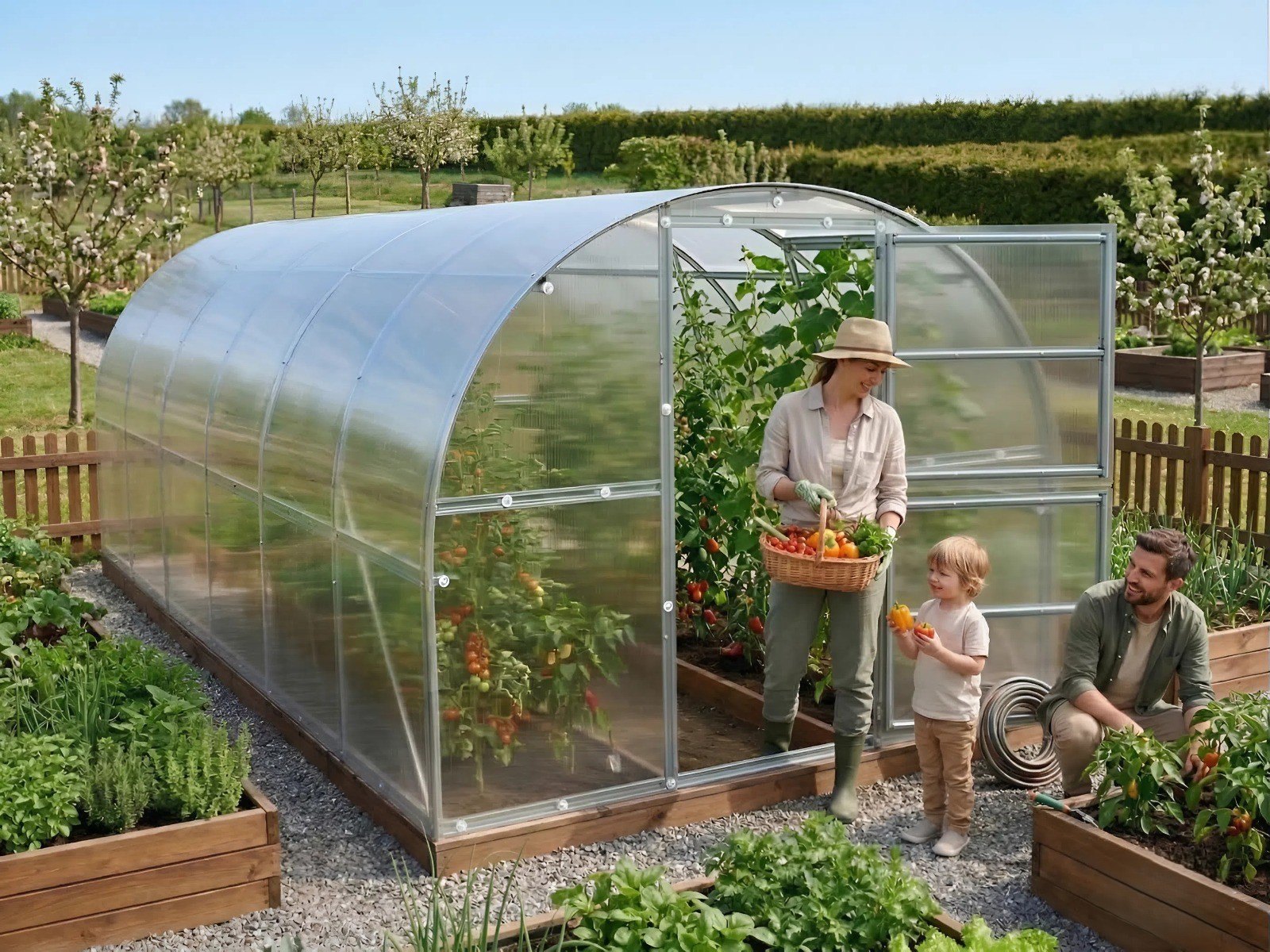 W skład dostawy wchodzi kompletna szklarnia = konstrukcja nośna, 1x okno dachowe, 1x drzwi, 1x tylne okno wentylacyjne + wszystkie niezbędne elementy łączące + płyty poliwęglanowe. Istnieje możliwość dokupienia szeregu akcesoriów do szklarni - półek, termometrów, higrometrów.