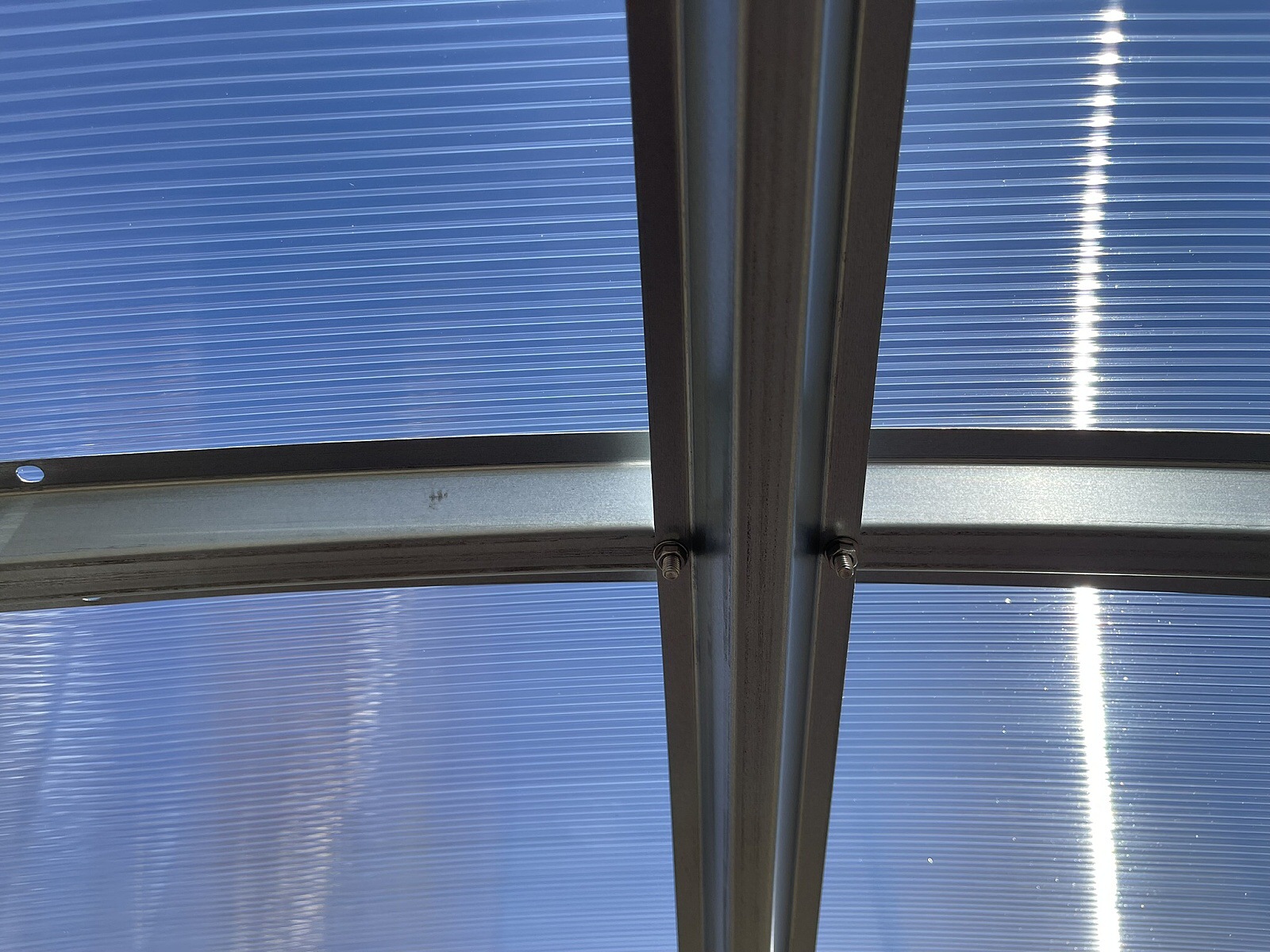 - szklarnia posiada dwie wewnętrzne podpory na każdym łuku, które dodatkowo zwiększają wytrzymałość konstrukcji na obciążenia śniegiem
