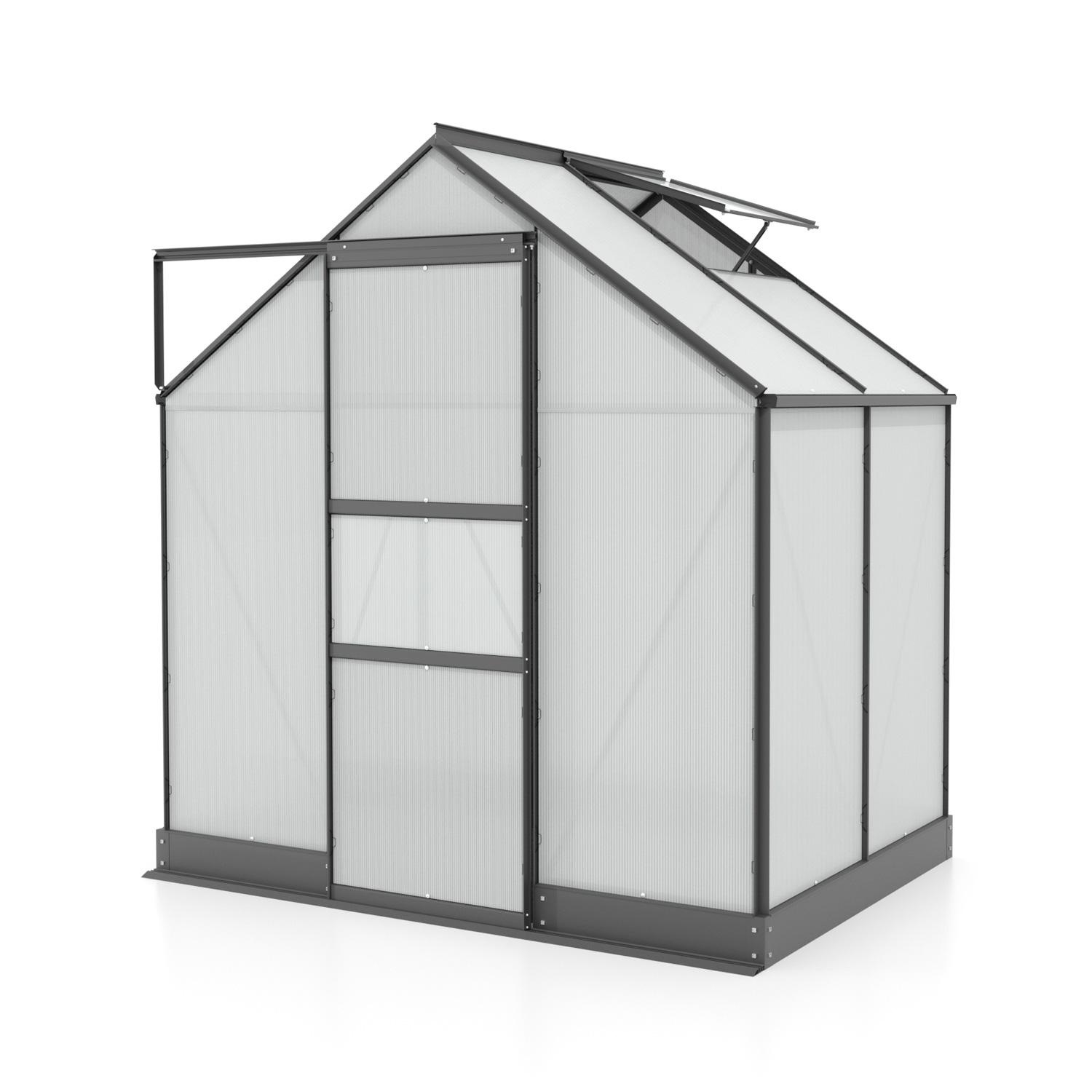 Szklarnia aluminiowa, sz 1,95 x gł 1,37 m, kolor czarny, 1x okno dachowe, poliwęglan 4 mm, podstawa w cenie, pow. 2,67 m2.