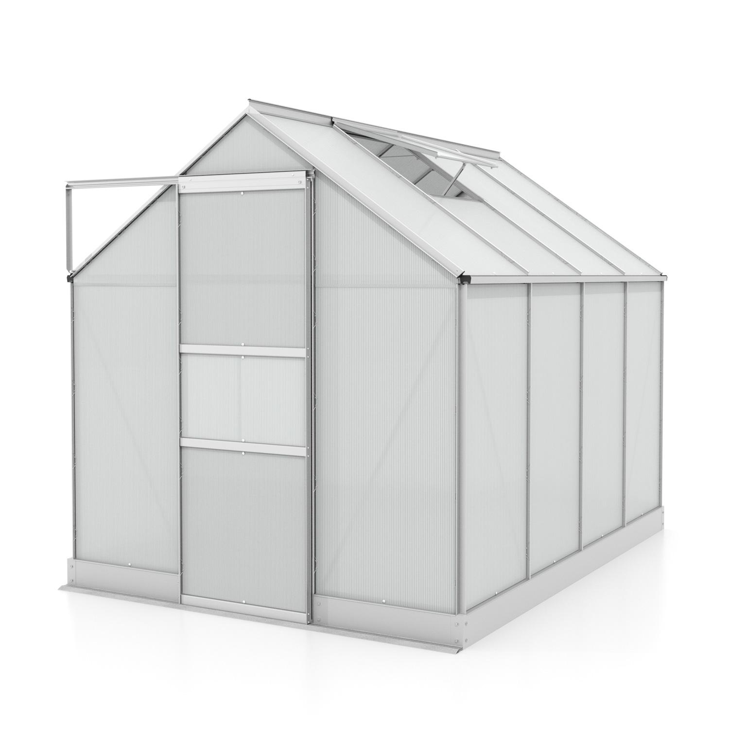 Szklarnia aluminiowa, sz 1,95 x gł 2,61 m, kolor srebrny, 1x okno dachowe, poliwęglan 6 mm, podstawa w cenie, pow. 5,09 m2.