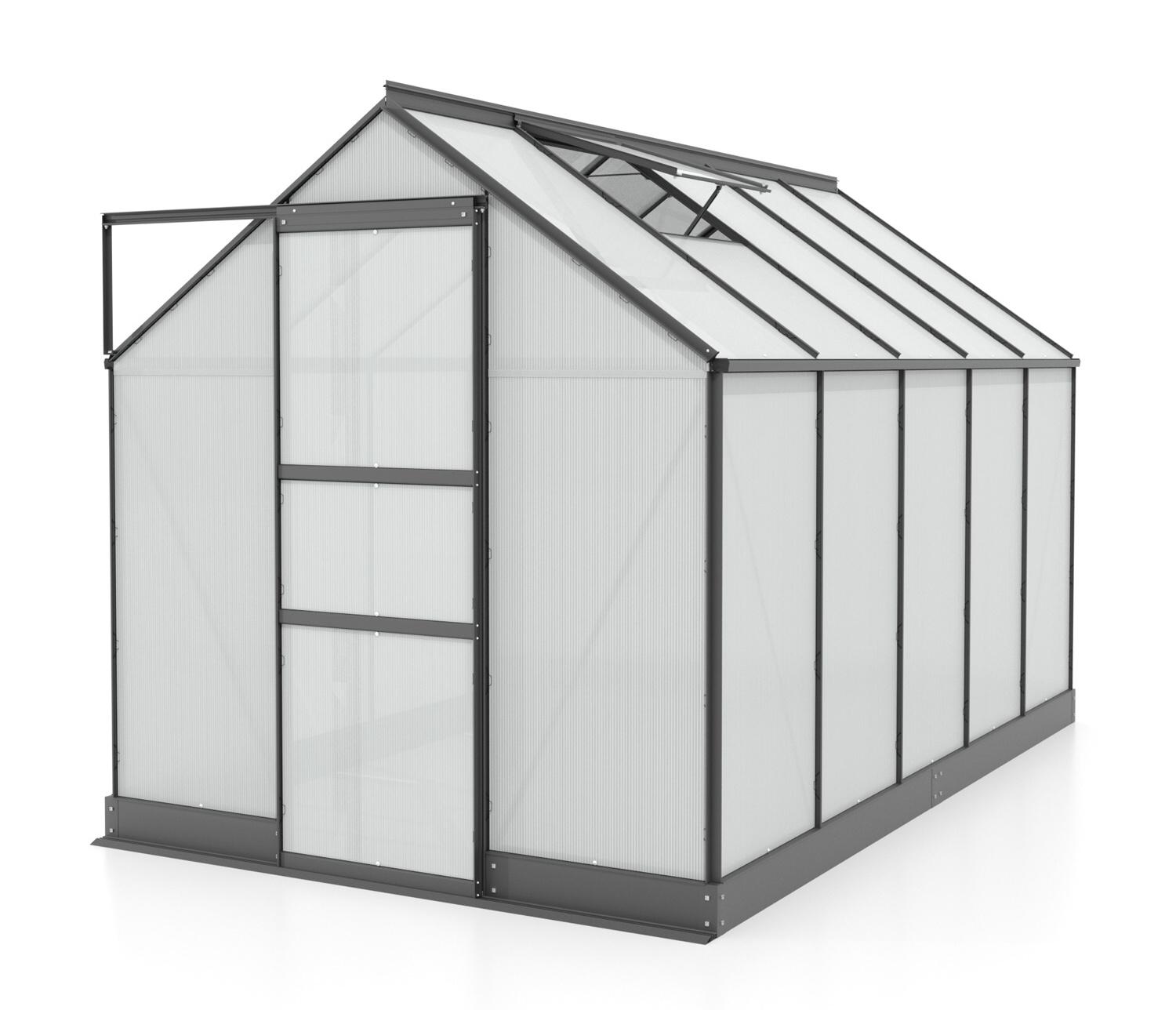 Szklarnia aluminiowa, sz 1,95 x gł 3,23 m, kolor czarny, 2x okno dachowe, poliwęglan 6 mm, podstawa w cenie, pow. 6,30 m2.