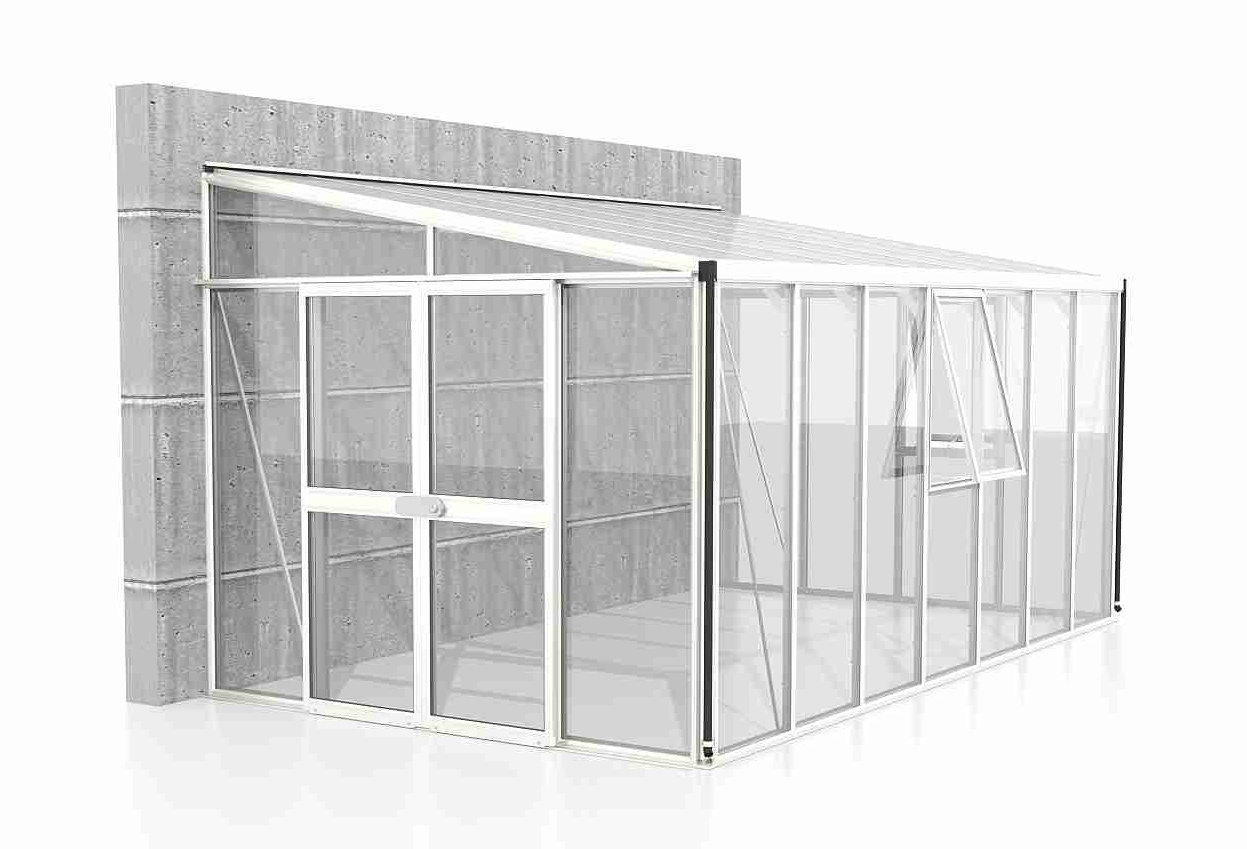 Szklarnie do ściany z serii ATHENA są zaliczane do kategorii PREMIUM - szklarnia jest produkowana przez renomowanego producenta z Wielkiej Brytanii. Szklarnia wykonana jest z anodowanych profili aluminiowych, a przeszklenie wykonane jest ze szkła hartowanego o grubości 3 mm. Szkło znacznie zmniejsza nagrzewanie się wnętrza w okresie letnim, jednocześnie zapewniając wystarczającą przepuszczalność światła. Przeszklenie dachu wykonane jest z termoizolacyjnych płyt komorowych z poliwęglanu o grubości 10 mm. Przeszklenie jest wsunięte w aluminiowe profile H.