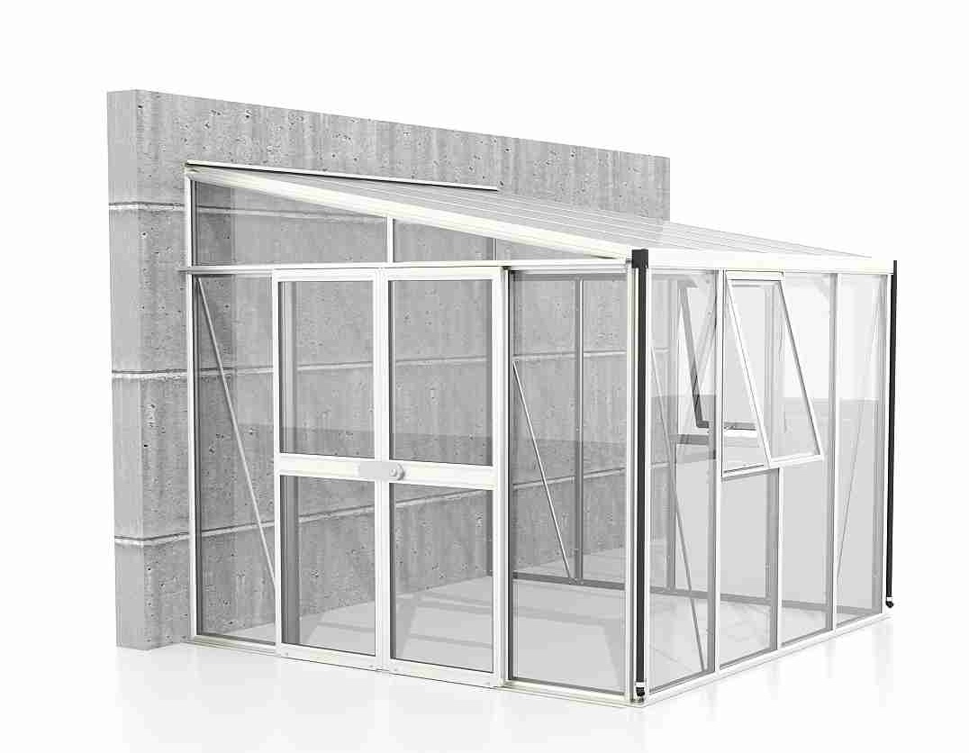 Szklarnie do ściany z serii ATHENA są zaliczane do kategorii PREMIUM - szklarnia jest produkowana przez renomowanego producenta z Wielkiej Brytanii. Szklarnia wykonana jest z anodowanych profili aluminiowych, a przeszklenie wykonane jest ze szkła hartowanego o grubości 3 mm. Szkło znacznie zmniejsza nagrzewanie się wnętrza w okresie letnim, jednocześnie zapewniając wystarczającą przepuszczalność światła. Przeszklenie dachu wykonane jest z termoizolacyjnych płyt komorowych z poliwęglanu o grubości 10 mm. Przeszklenie jest wsunięte w aluminiowe profile H.