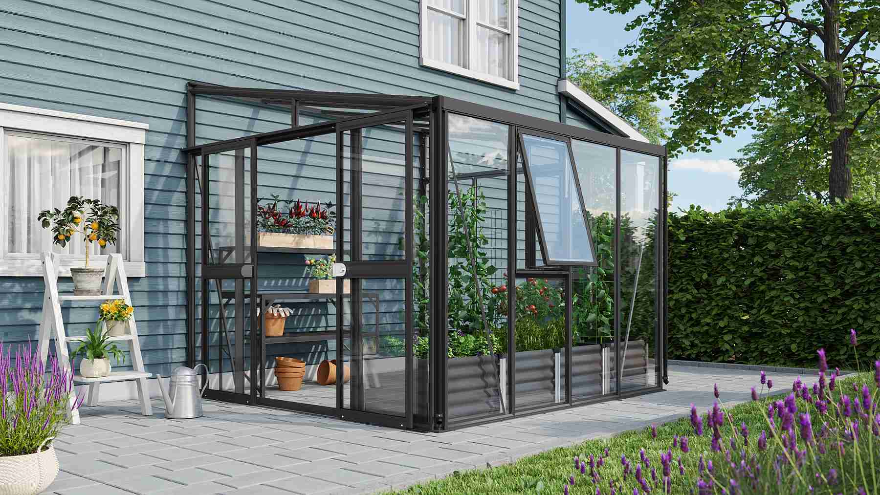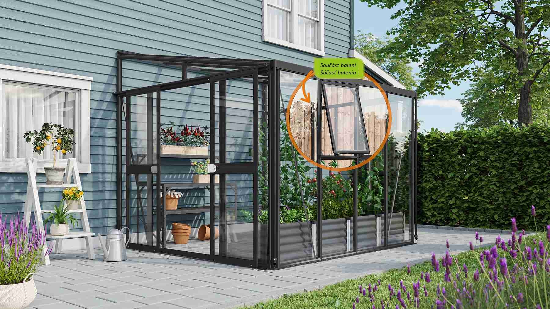 Szklarnia jest przeznaczona do montażu na ścianie – tylna ściana nie jest częścią konstrukcji.