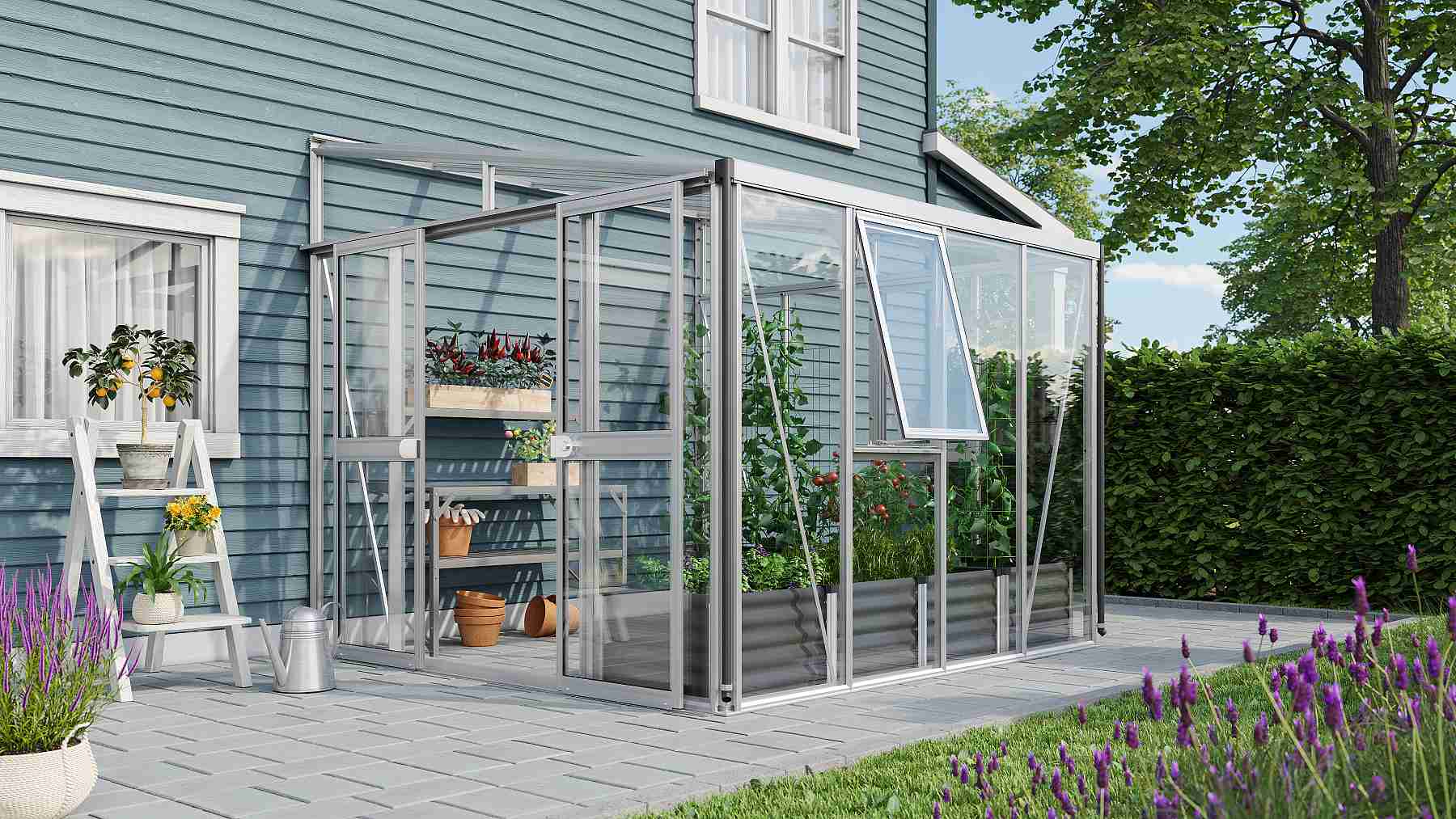 Szklarnia jest przeznaczona do montażu na ścianie – tylna ściana nie jest częścią konstrukcji.