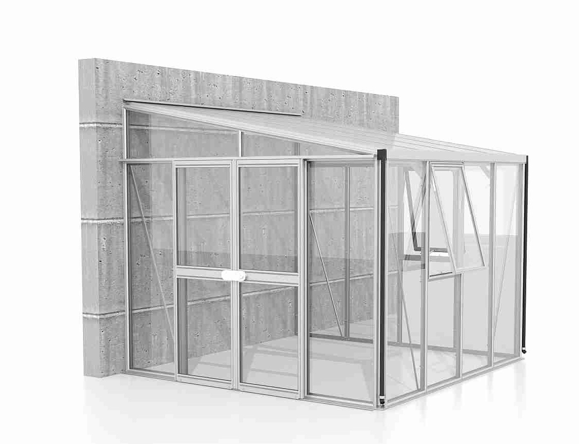 Szklarnie do ściany z serii ATHENA są zaliczane do kategorii PREMIUM - szklarnia jest produkowana przez renomowanego producenta z Wielkiej Brytanii. Szklarnia wykonana jest z anodowanych profili aluminiowych, a przeszklenie wykonane jest ze szkła hartowanego o grubości 3 mm. Szkło znacznie zmniejsza nagrzewanie się wnętrza w okresie letnim, jednocześnie zapewniając wystarczającą przepuszczalność światła. Przeszklenie dachu wykonane jest z termoizolacyjnych płyt komorowych z poliwęglanu o grubości 10 mm. Przeszklenie jest wsunięte w aluminiowe profile H.