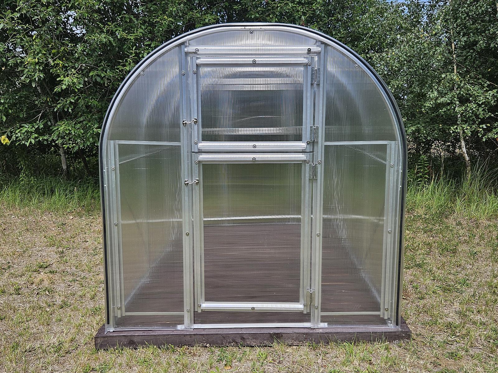 Łukowa aluminiowa szklarnia sz 2 x gł 4 m, profile aluminiowe,poliwęglan o grubości 4 mm z Wielkiej Brytanii, pow 8 m2.
