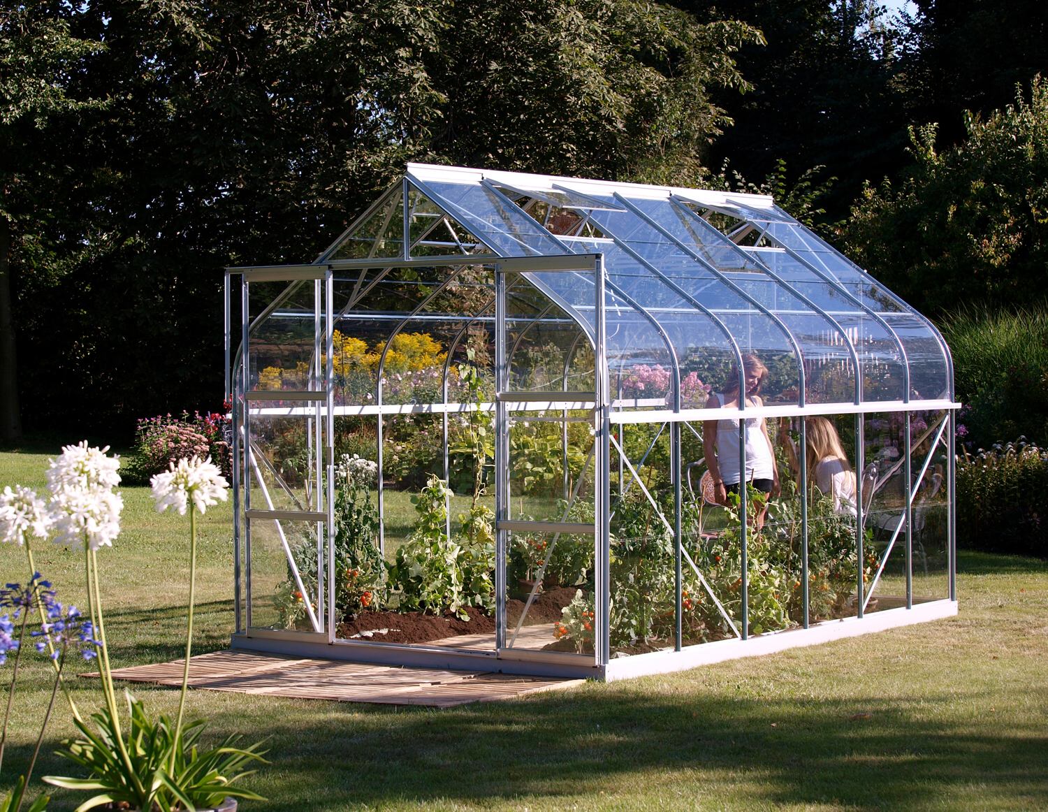 Szklarnie z serii DIANA zaliczane są do kategorii PREMIUM - szklarnia wykonana jest przez markowego producenta z Wielkiej Brytanii. Szklarnia wykonana jest z profili aluminiowych anodowanych, przeszklenie z hartowanego szkła przezroczystego o grubości 3 mm. Przezroczyste szkło zapewnia doskonałą przepuszczalność światła, dzięki czemu można pięknie zajrzeć do szklarni ze wszystkich stron i cieszyć się kolorami uprawianych roślin. Przeszklenie mocowane jest do profili aluminiowych za pomocą stalowych klipsów.