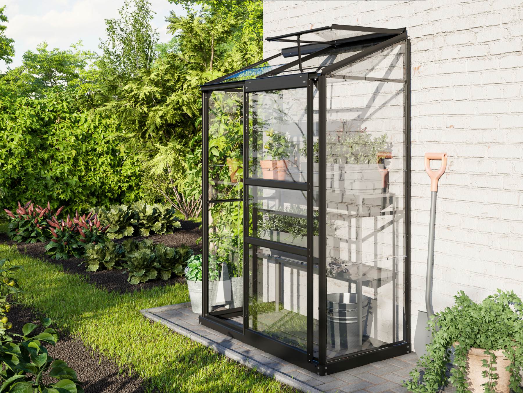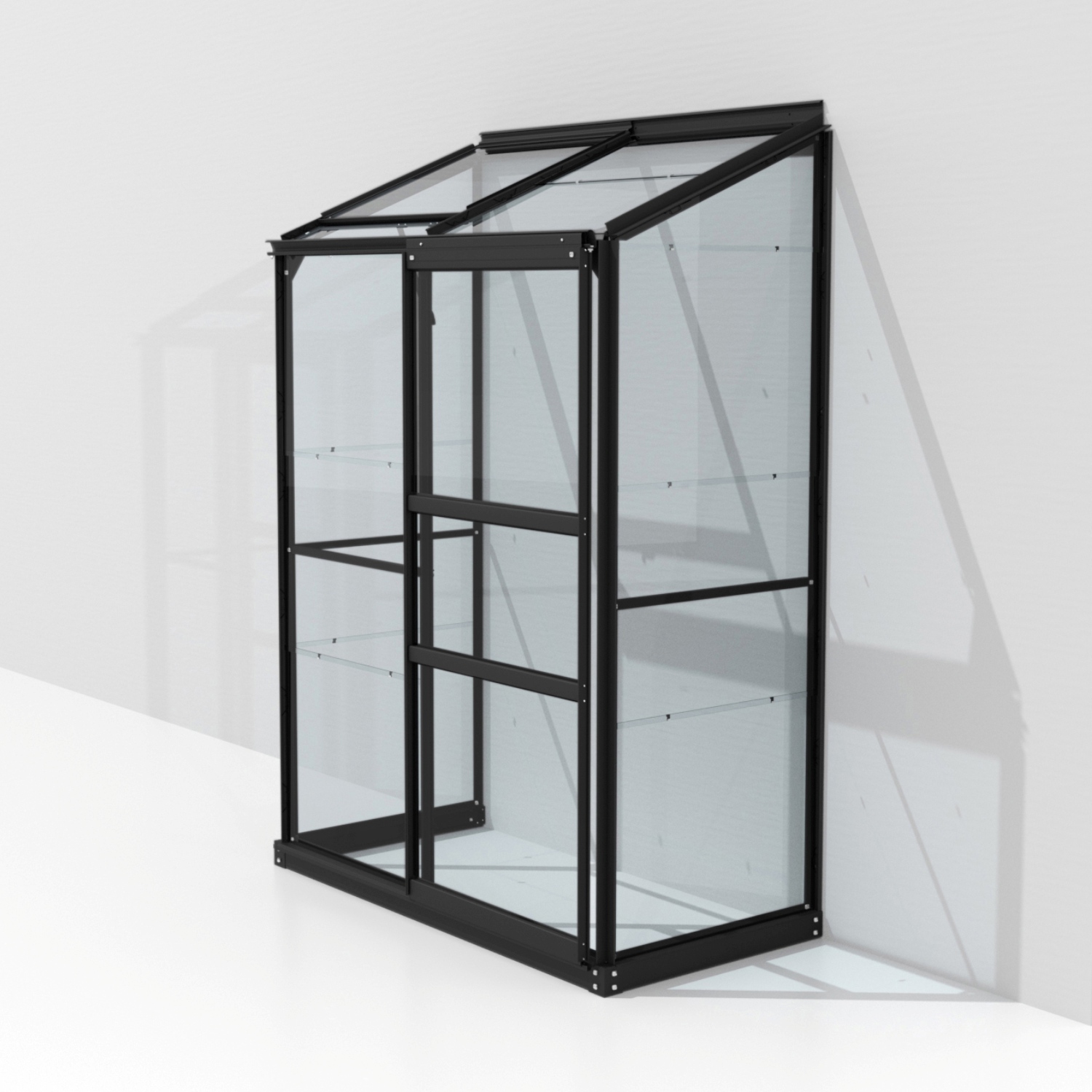 Szklarnia jest przeznaczona do montażu na ścianie – tylna ściana nie jest częścią konstrukcji.